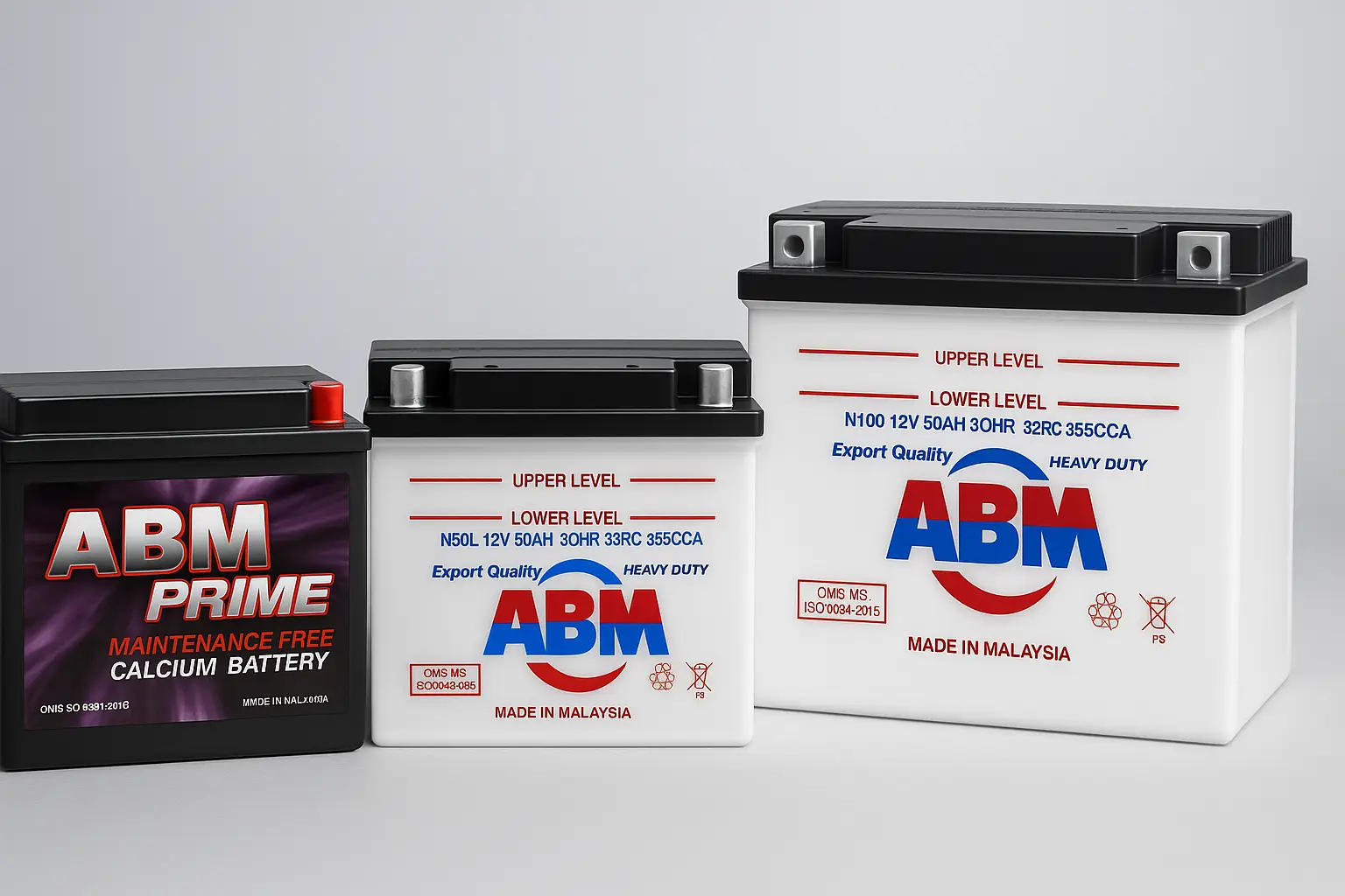 ABM batteries combine high cranking power, long service life, and stability in harsh climates, manufactured to global standards for dependable starts and reliable performance.
